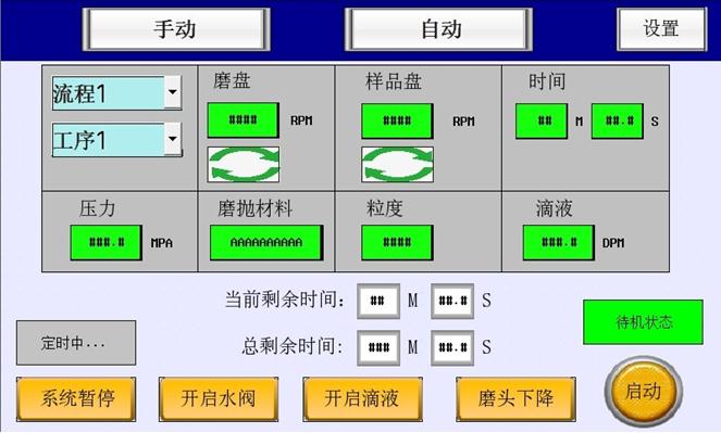 3. 触摸屏界面:磨抛参数设定方便,状态显示直观,操作简单;